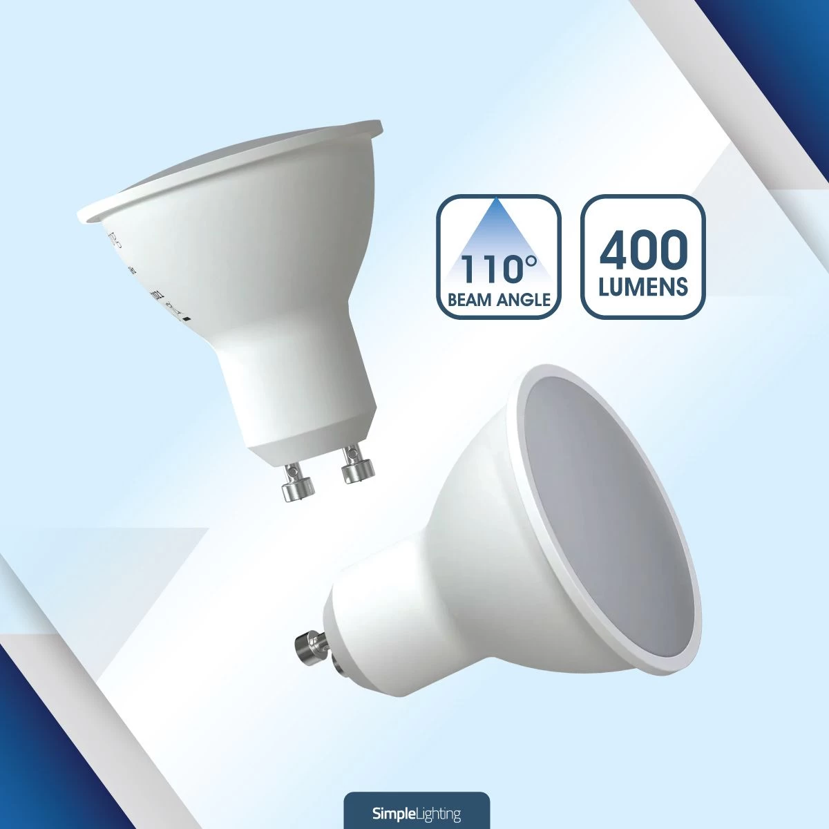 This GU10 bulb can produce 400 lumens maximum brightness while only consuming a minimal 5w power. No incandescent bulb can come close to this level of efficiency!