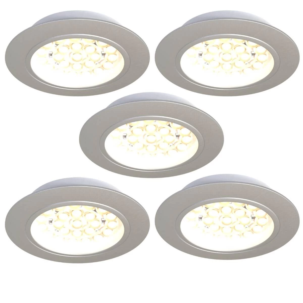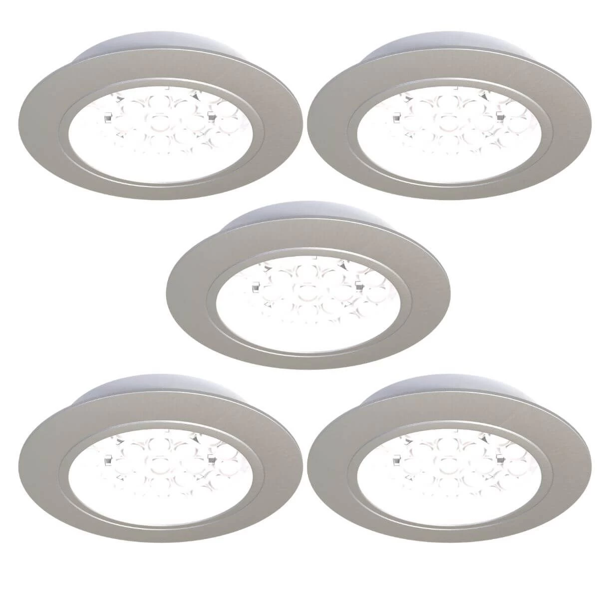 If you choose this pack then you will receive 5 x round, recessed under cabinet lights & 1 x 15w LED driver. The lights are 12v & the driver is 220v mains wireable so that it can be wired directly into a plug socket or light switch, alternatively, you could wire a plug onto the end of the driver cable and plug it into a spare plug socket.