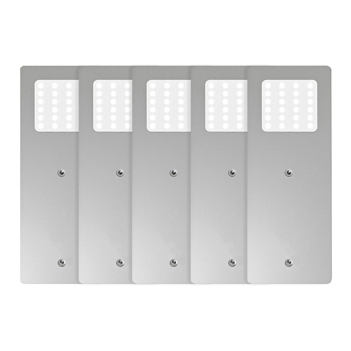 Super-set of 5 under cabinet Recti lights, featuring a super slim design and natural white light plus a 12Vdc LED driver with a fast plug-in system.