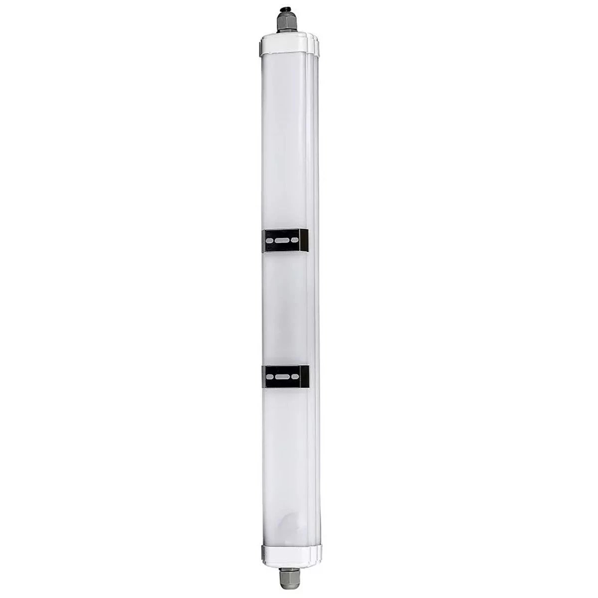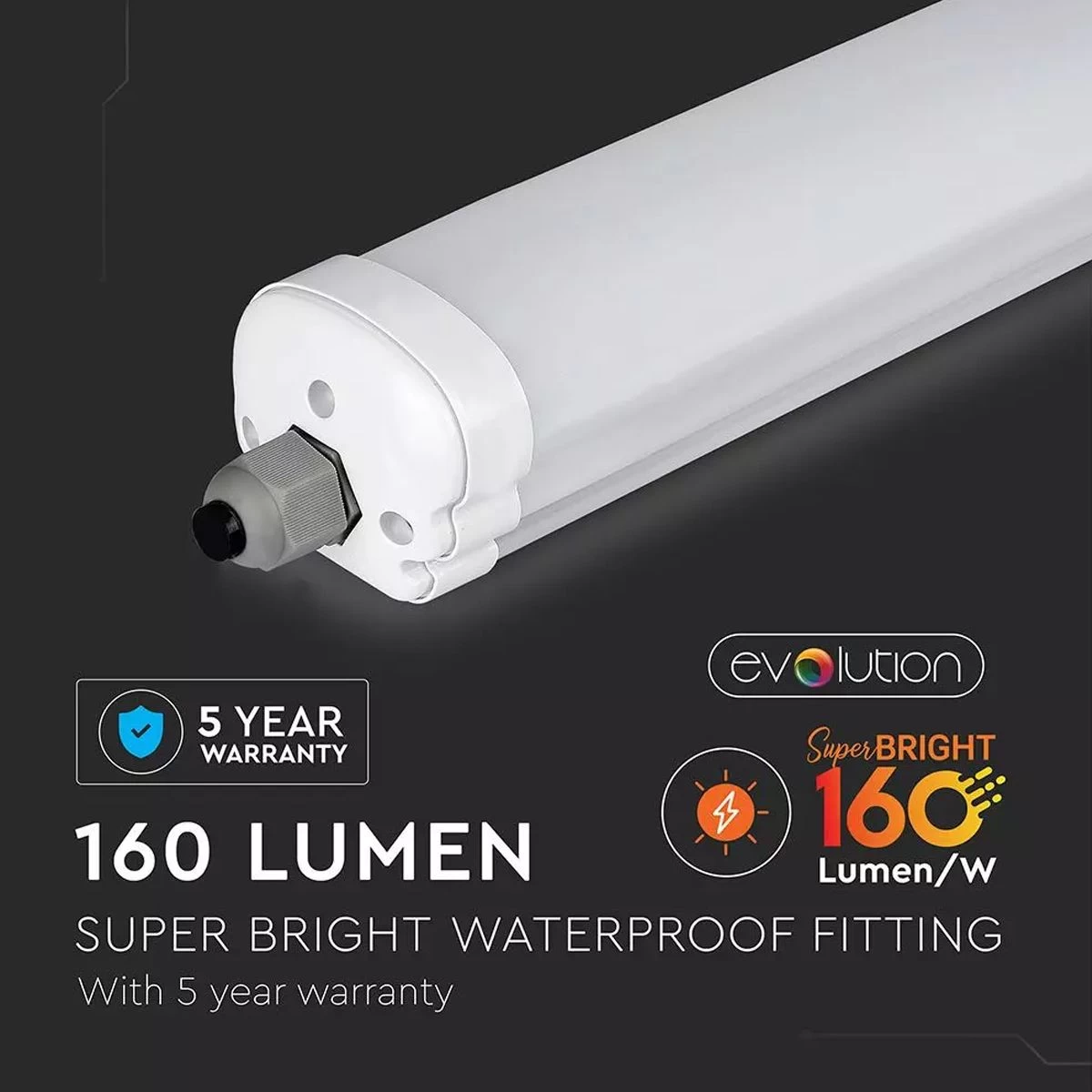 At 32W per tube (150cm long), this waterproof LED light fitting can produce a brightness of 5120 lumens with a 120-degree beam angle. Also, because of the high-quality materials used in making these lights, like the Samsung branded LED chips, they’ll last for around 30,000. On top of that, these lights are super easy for your electrician to install and as an added bonus, they can be connected in series instead of in parallel.