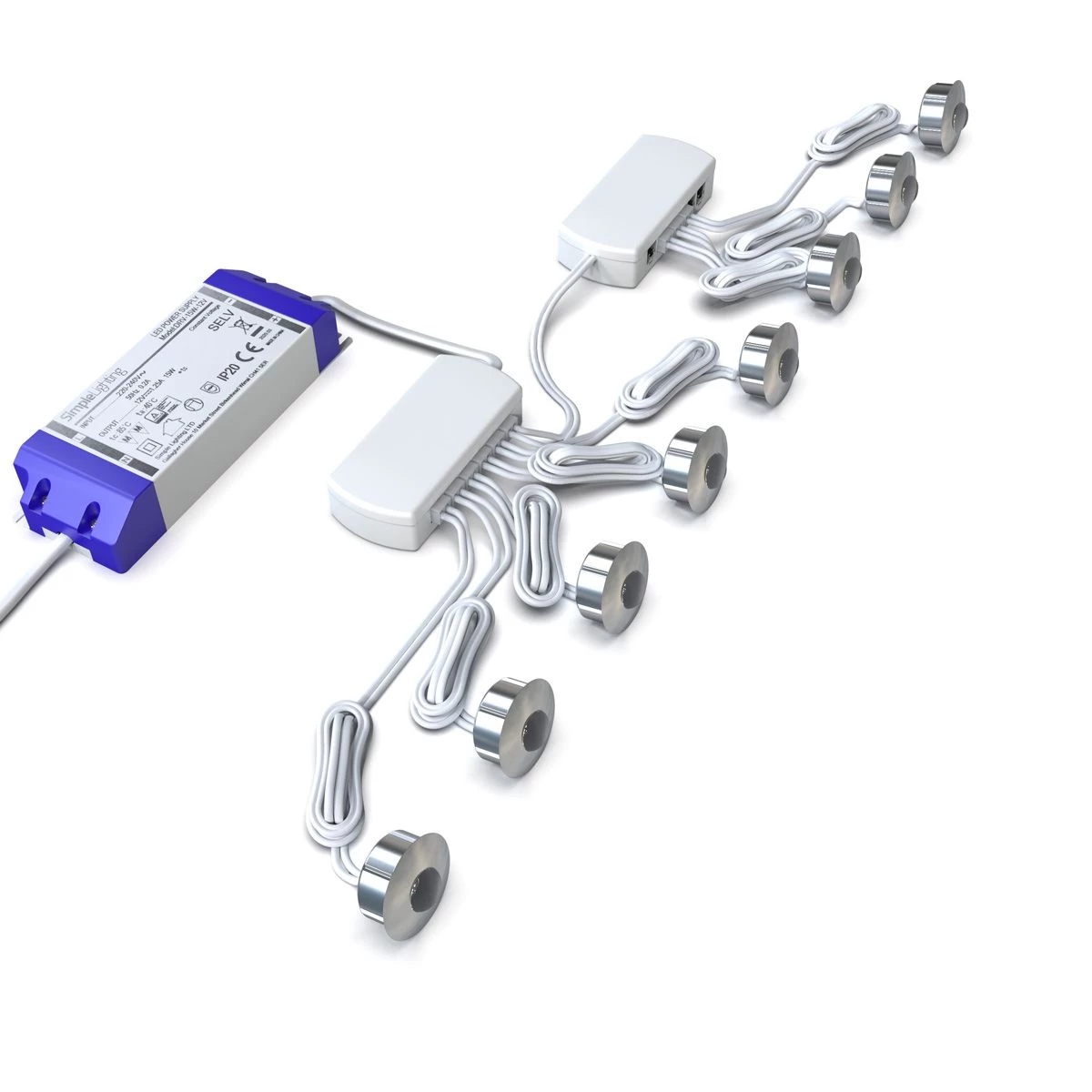 The LED plinth lights are installed recessed, so don’t forget to trim the 25mm cut-out hole accurately. Also, it’s only IP20-rated, and each fitting comes with a 2-metre-long cable which connects directly to the LED Driver. But if required, you can extend it by using our extension cable (2 or 5 metres).