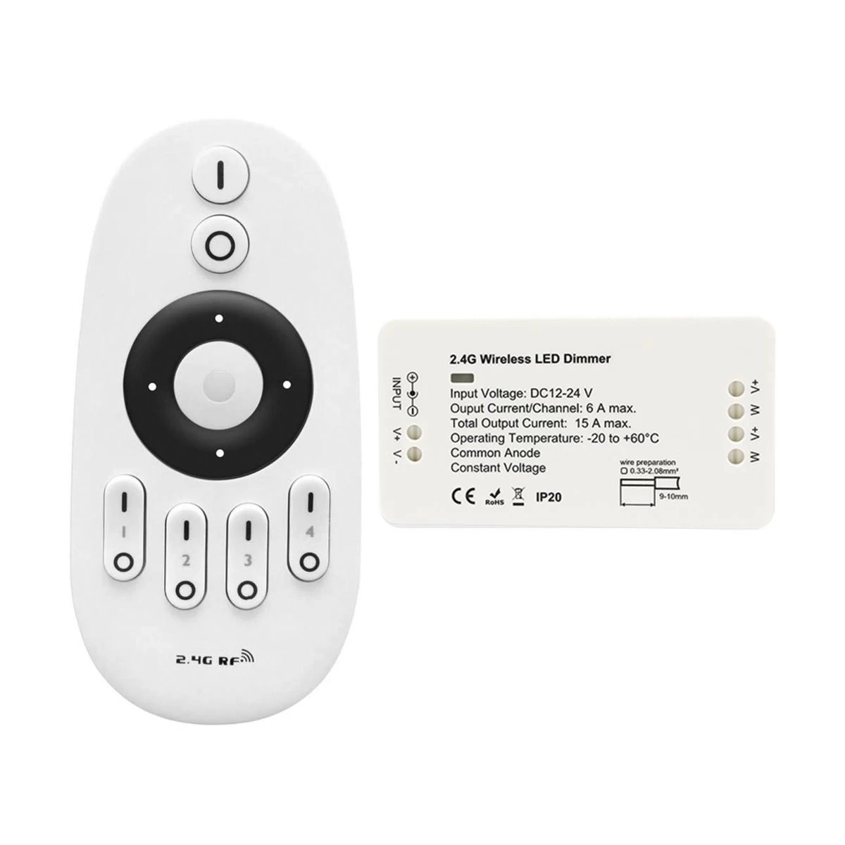 This four-channel LED dimmer controller and remote requires two AAA batteries, which are not supplied. So, ensure that you have them ready so that you can immediately use them when this dimmer set arrives!