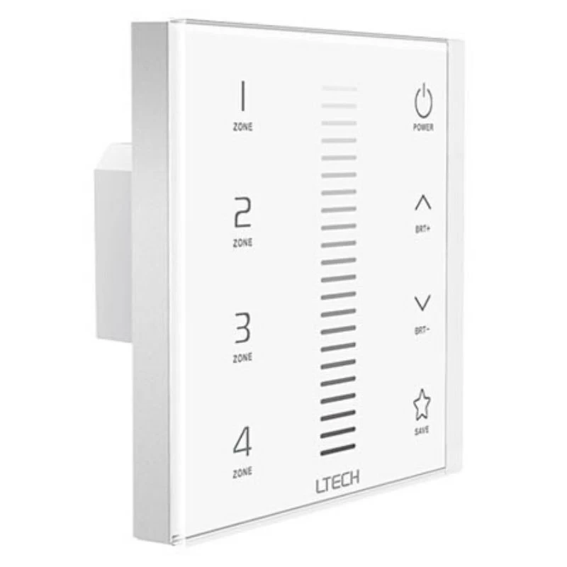 One of our most stylish LED tape controllers is here! This wall-mounted, glass-fronted, 4-zone wall dimmer allows you to gain greater control over the intensity of your lights with an easy-to-use touch panel slider.