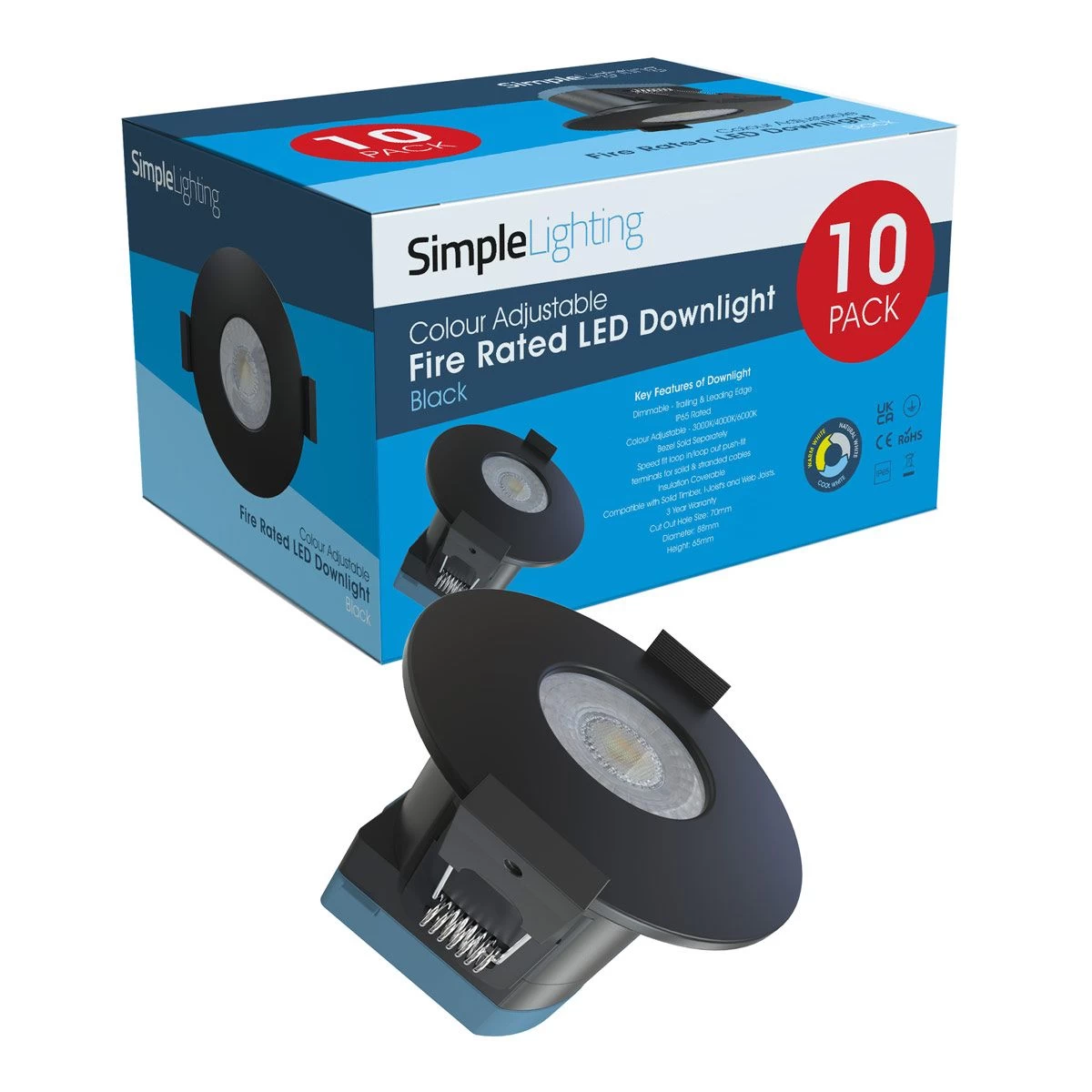 - Pack of 10 Fire-rated Downlight