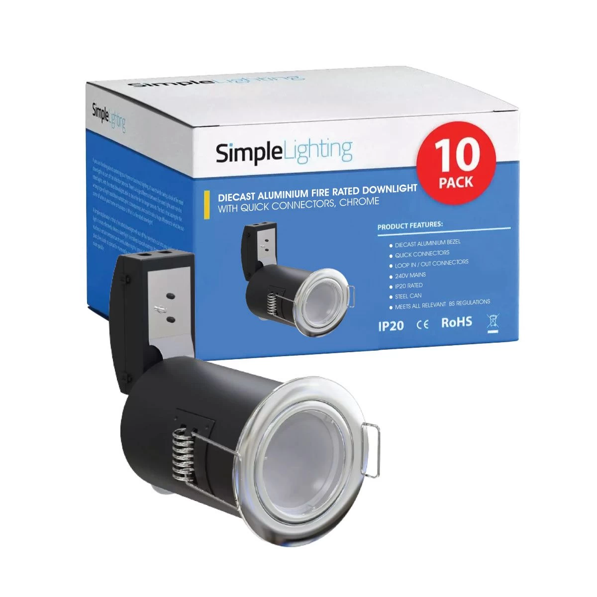 - Multi Pack of 10 Fire Rated Downlights – Brushed Chrome