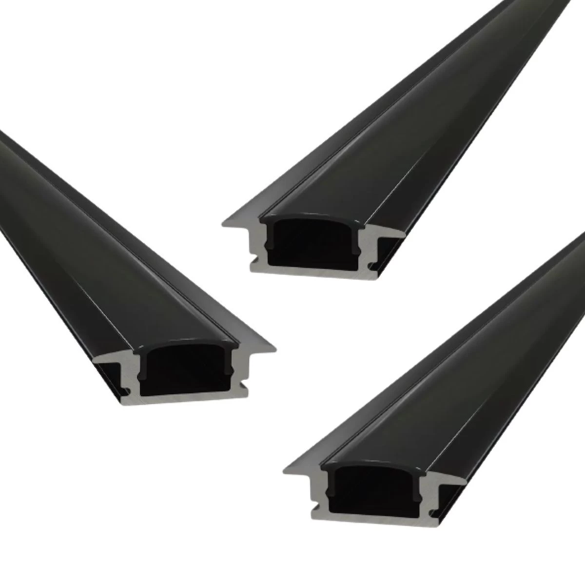 Pack of 3 Black Aluminium Profiles with Black Diffuser