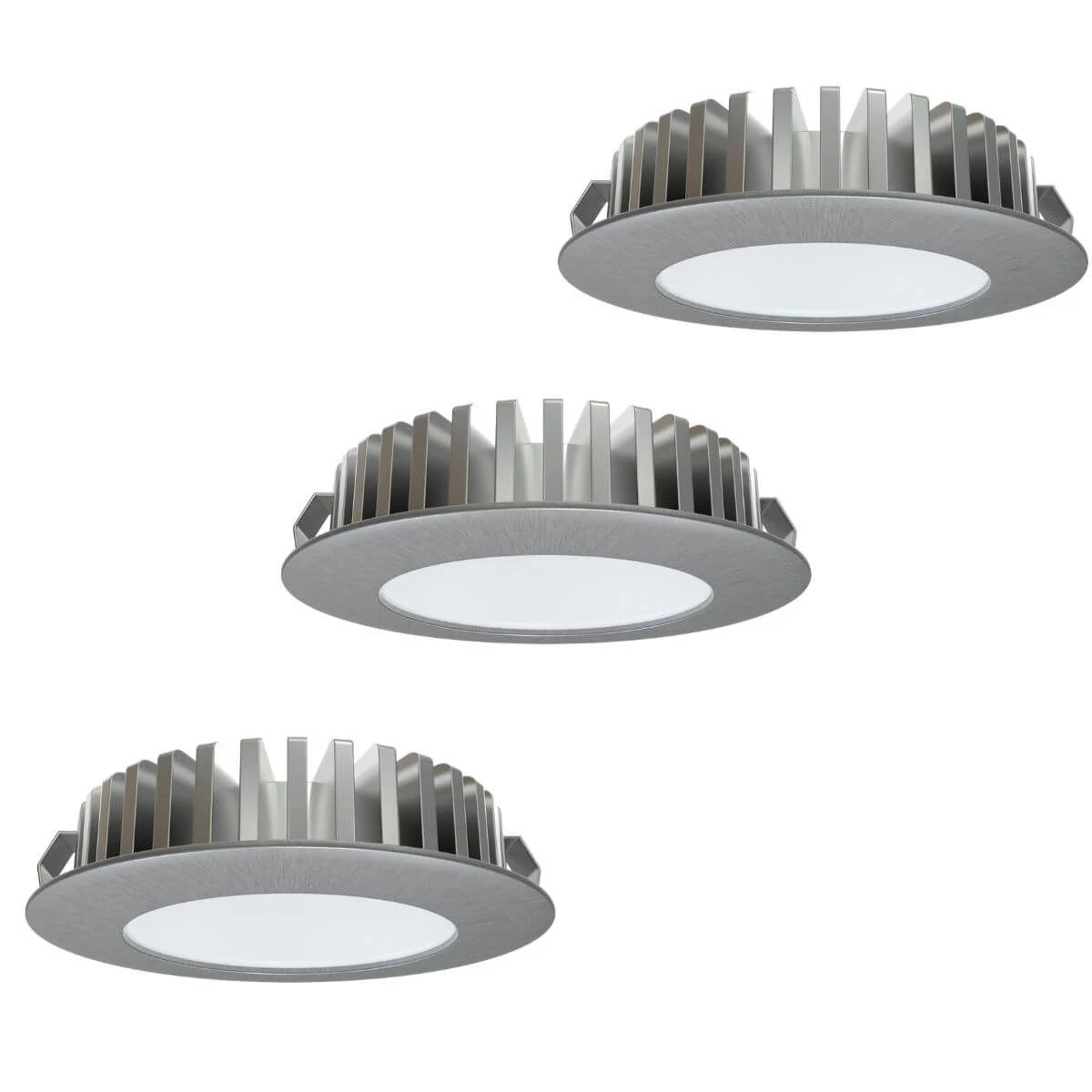 This 3 pack of Recessed Under Cabinet Lights in a Brushed Chrome finish provides stunning under cabinet lighting in your kitchen, bathroom, or any other room in your house. (see images of them installed in a bedroom & above wardrobe doors).