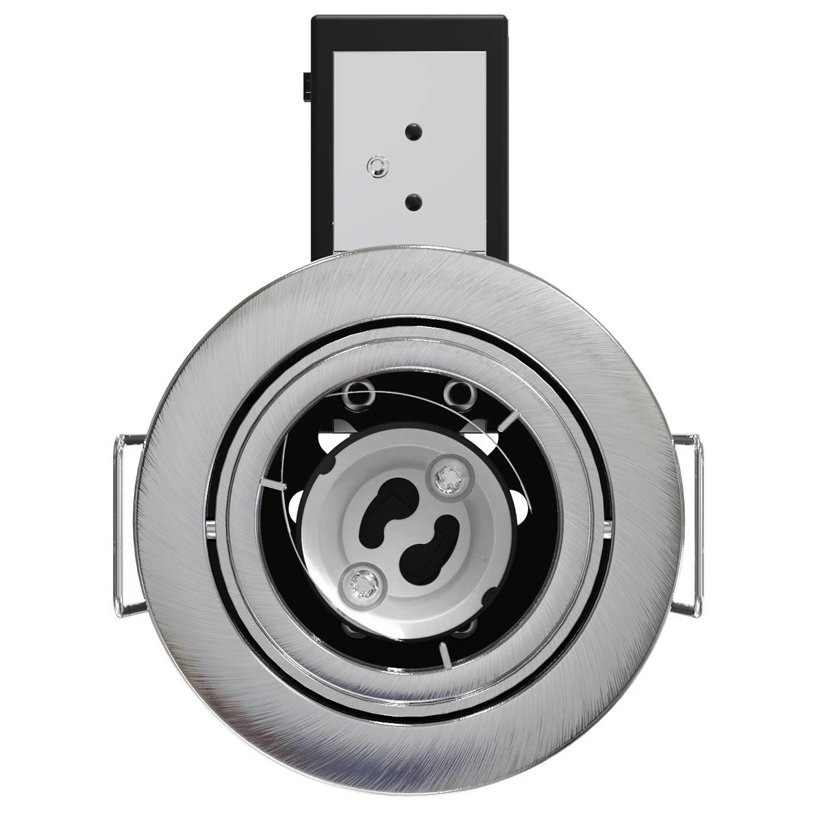 This Pack of 50 Tiltable Fire Rated GU10 Die-Cast Downlights has a fabulous polished chrome bezel that complements a modern interior or a classic setup. In addition, its tiltable gimbal gives you all the freedom to redirect your light beams wherever you please!