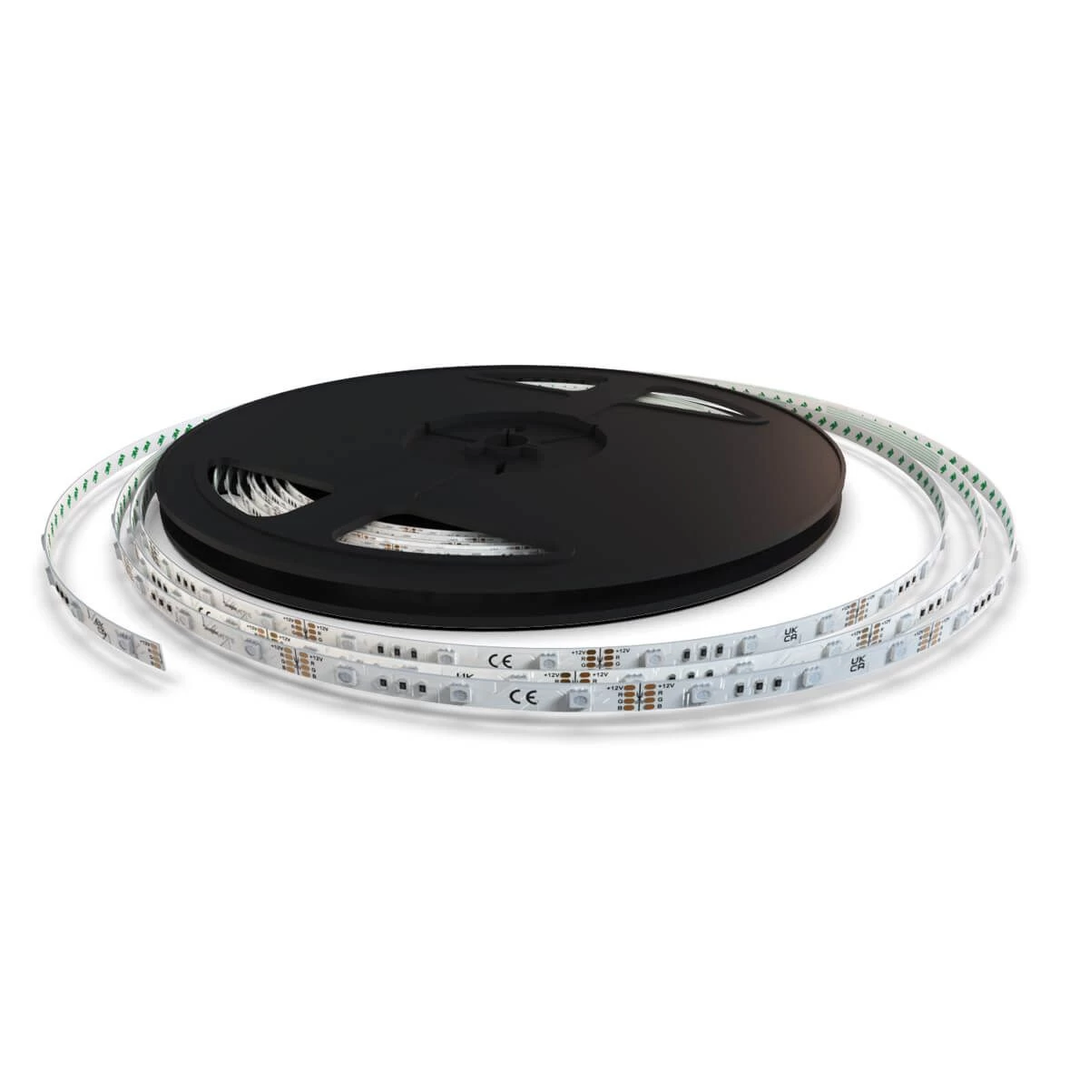 Our12v RGB LED strip features 30 high-quality individual LEDs per metre that emit beautiful rich colours. It’s fully compatible with our range of wall controllers and remote controls, allowing you to choose a single colour from the full RGB spectrum, select from beautiful colour changing sequences, choose to speed up/slow down the sequences and dim the brightness of your lights.